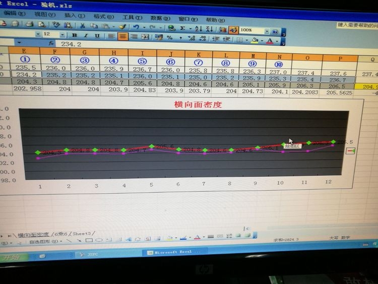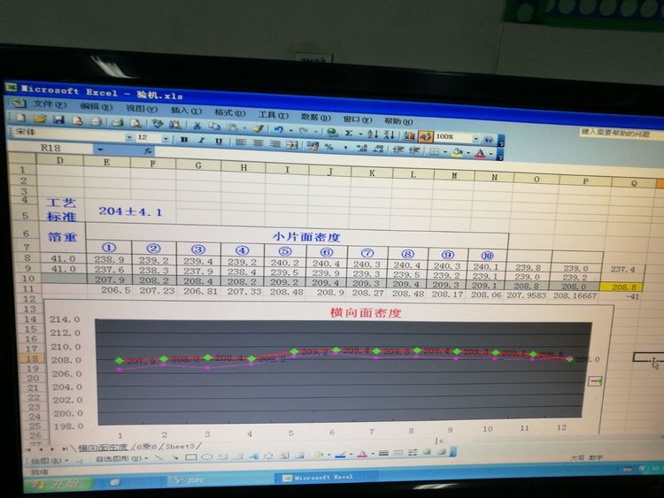 更換墊片為1.0㎜后的首檢頭與中間的面密度對比結(jié)果